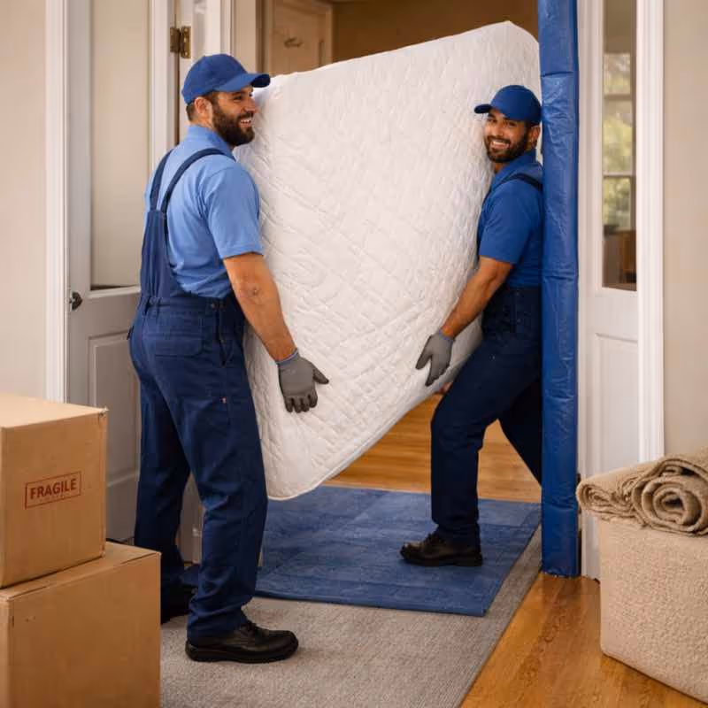 Our moving crew lays protective materials before the first item leaves the truck. Removal is included in the service, so you don't have cleanup work after we finish.